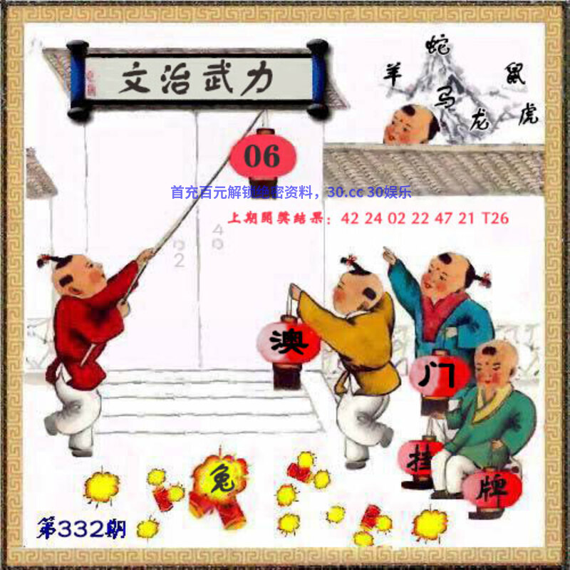 332期正版彩图挂牌:挂:06 爆:兔 挂牌成语:文治武力 挂牌出肖:羊马龙鼠虎蛇